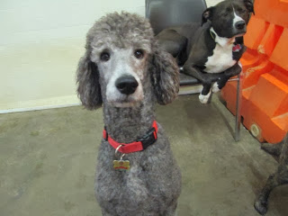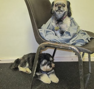 Both dogs got sent to doggy daycare today. Nero was super excited when I dropped him off. Ms. Lion was shivering. Looks like she continued to shiver, because they draped her in a blanket! At least she doesn't look freaked out like she normally does when we take her to Lucky Pawz! Check it out: