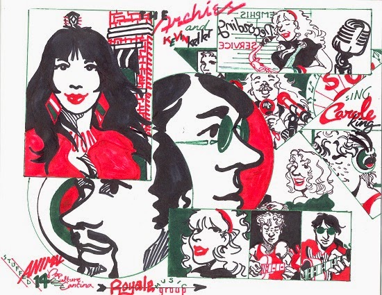 My buddy Stuffed Animal gave up on drawing The Archies a couple weeks ago -- and then he promptly fell off the wagon this week! He's been drawing his unique vision of The Archies all grown up. Somehow my Nero got involved with the band and he's a pretty protective poodle when it comes to his friends.